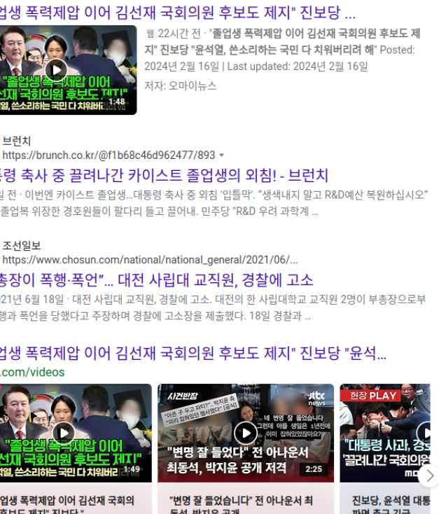 "졸업생 폭력제압 이어 김선재 국회의원 후보도 제지" 진보당 "윤석열, 쓴소리하는 국민 다 치워버리려 해" News2024. 2. 17. 17:10