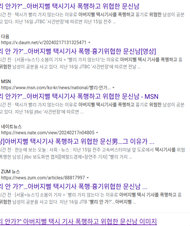 “빨리 안가?”…아버지뻘 택시기사 폭행하고 위협한 문신남 News2024. 2. 17. 17:53