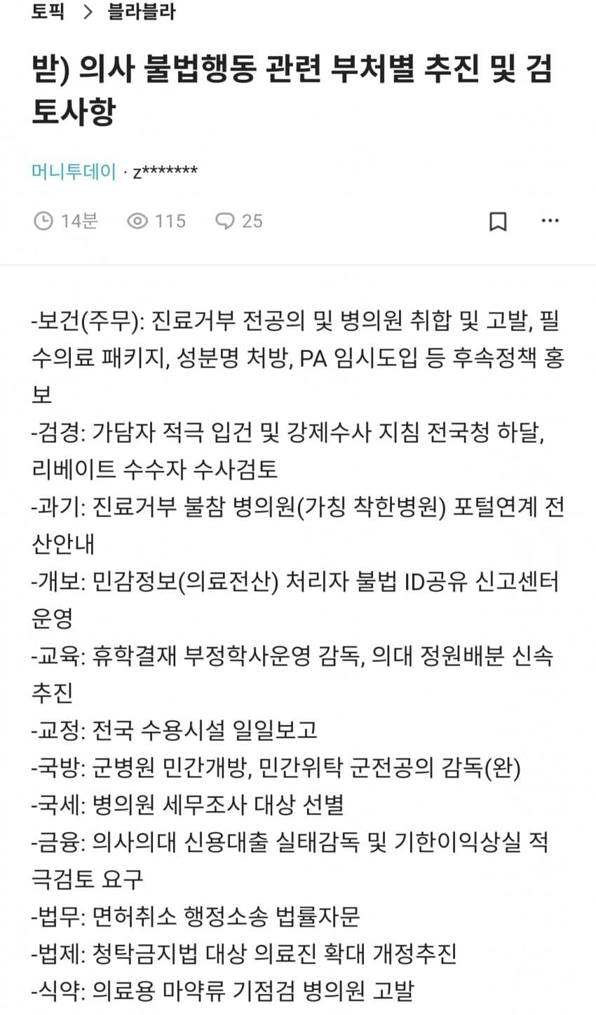 받) 의사 불법행동 관련 부처별 추진 및 검토사항 - 찌라시 발 News2024. 2. 18. 17:57