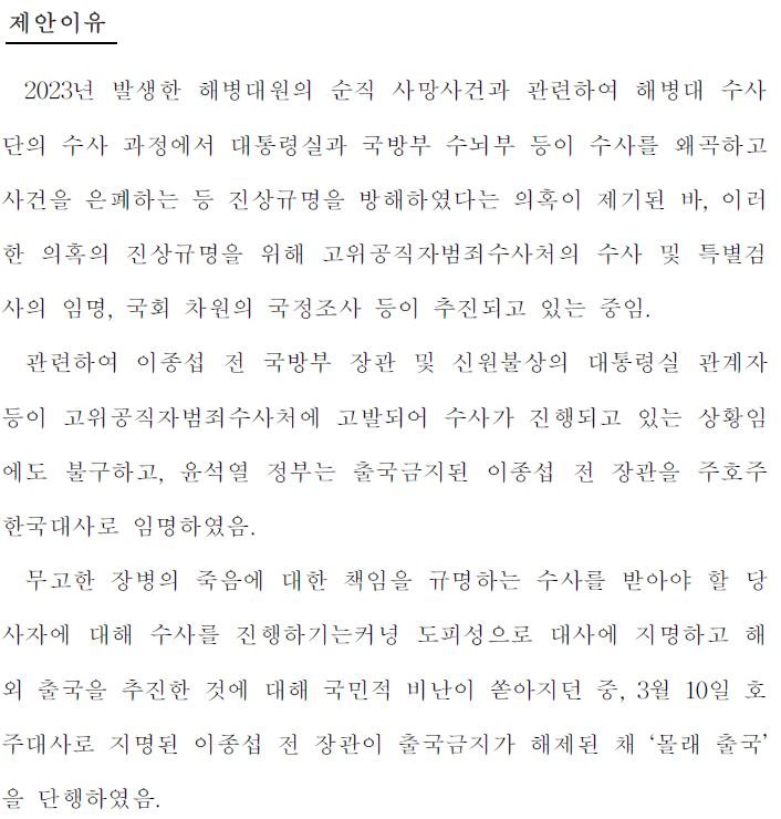 채상병 특검법 내용 (박주민대표발의 外155人) 의안정보시스템 참고