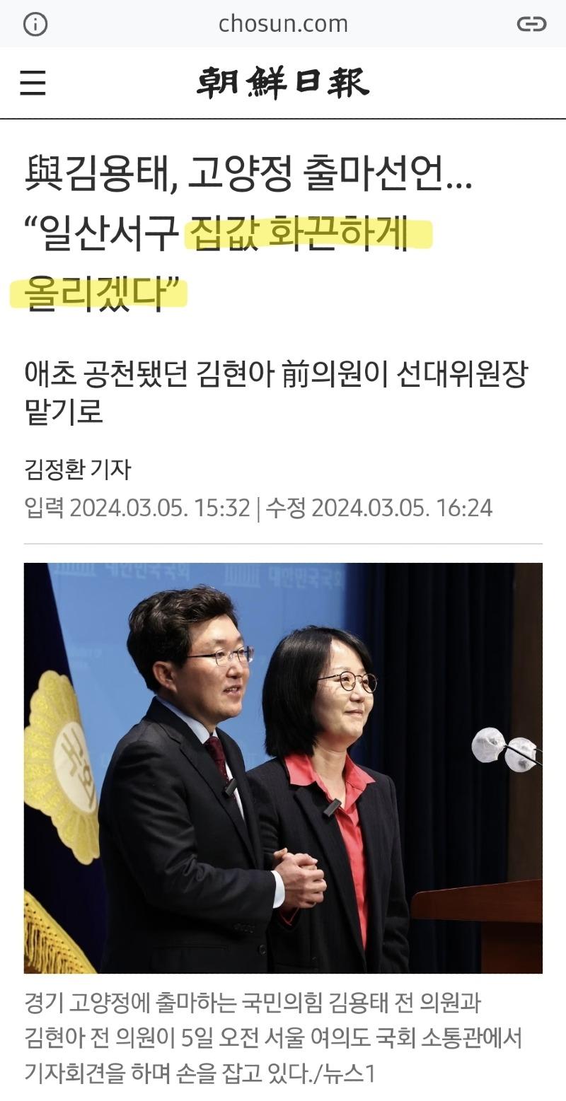| 조선 : 위기의 여당, 대통령실과 선긋기 나설까 (0) | 2024.03.14 |