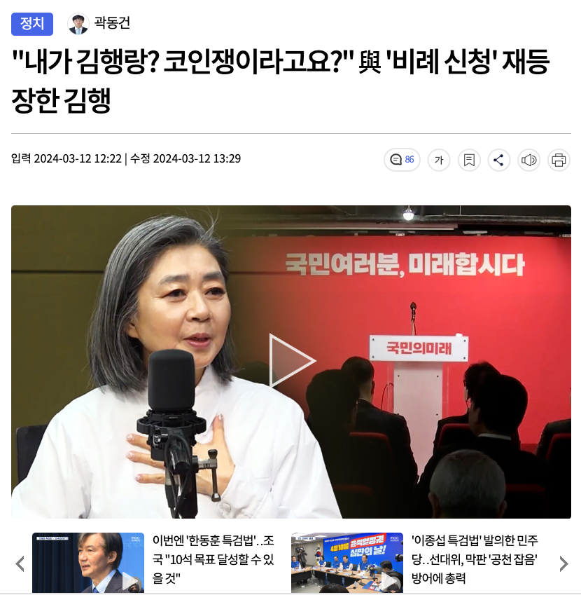 "내가 김행랑? 코인쟁이라고요?" 與 '비례 신청' 재등장한 김행 News2024. 3. 14. 13:27