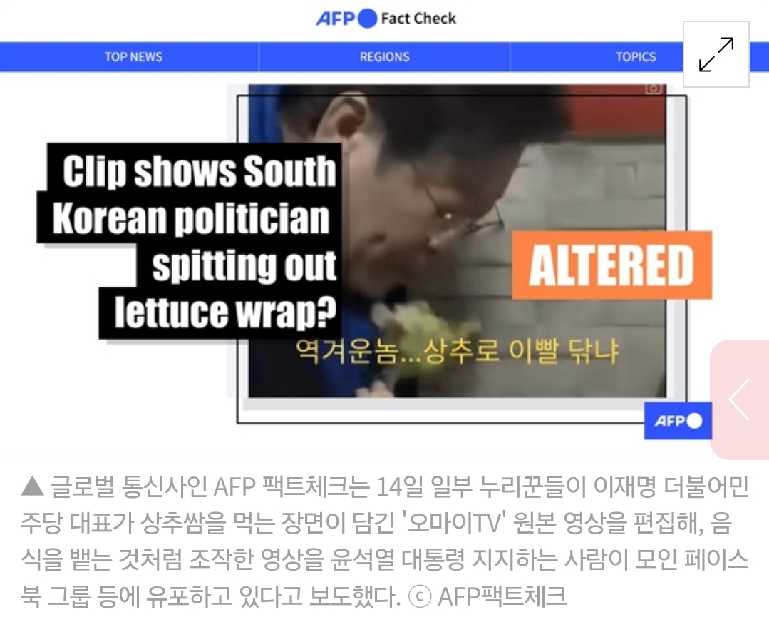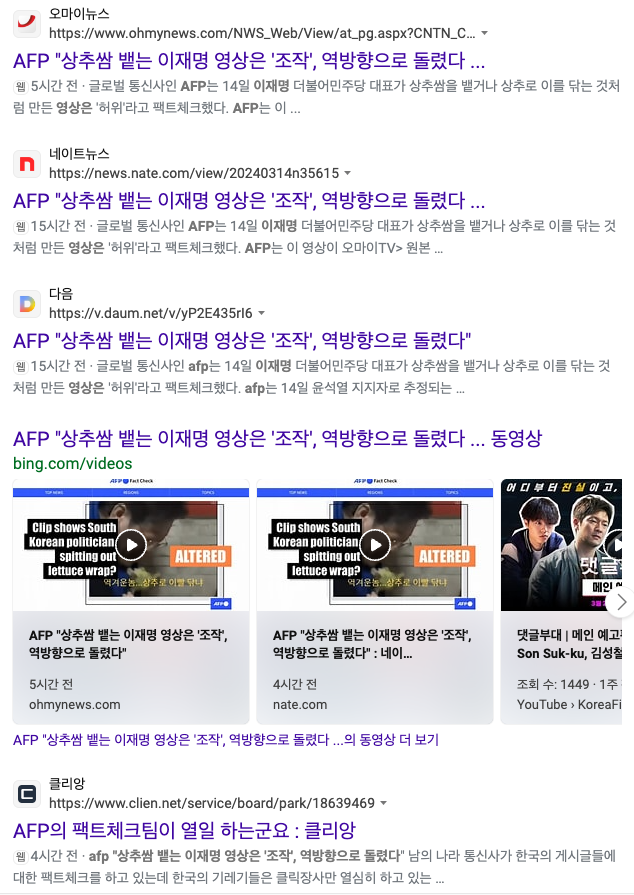 AFP "상추쌈 뱉는 이재명 영상은 '조작', 역방향으로 돌렸다" News2024. 3. 15. 00:19