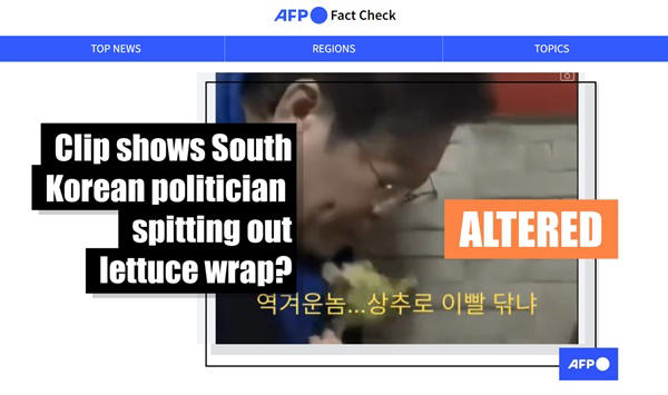 AFP "상추쌈 뱉는 이재명 영상은 '조작', 역방향으로 돌렸다"