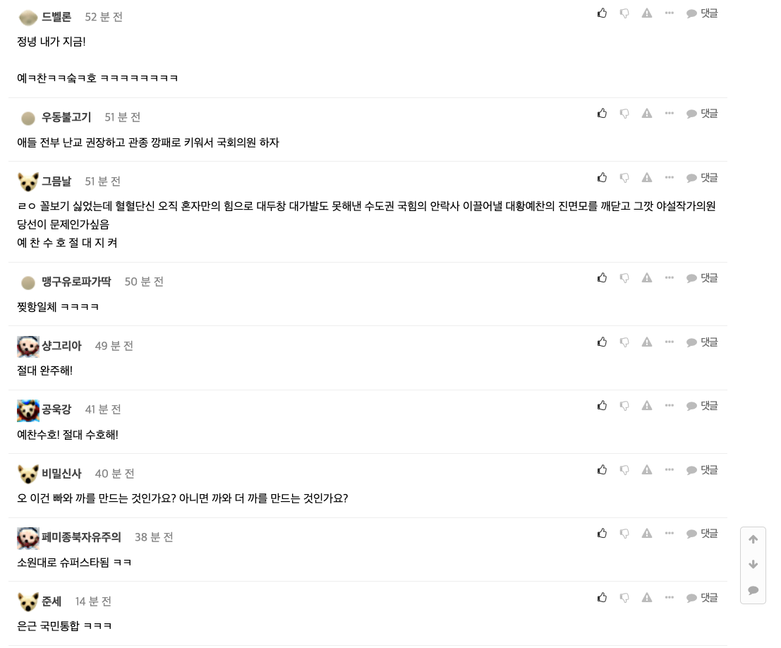 묘재 난교 애마 공도 대마 책값 예찬 Yuji 수호 격하게 응원합니다. 온 국민이 씹고 뜯고 맛보고 즐기게 롱런 Yuji해주기 바랍니다. 장예찬 후보 지지자님들 응원 댓글 한마디씩 써 주세요. 수호해야 합니다.