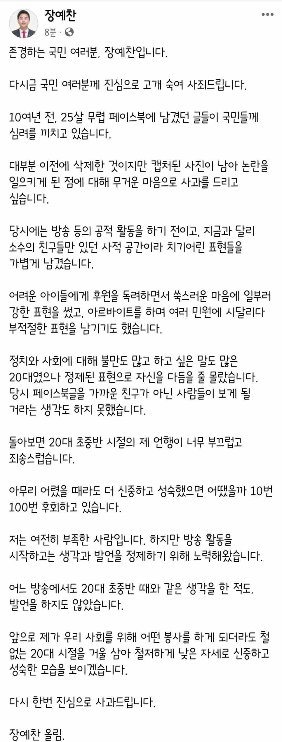장예찬의 사과문 그리고 장예찬 Yuji로 뒤덮인 커뮤니티