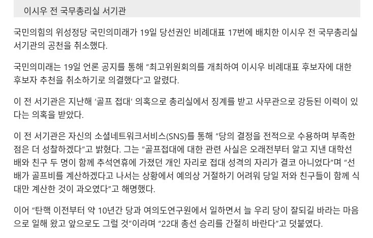 [속보] '골프접대 논란' 與이시우 비례대표 공천 취소 News2024. 3. 19. 21:20