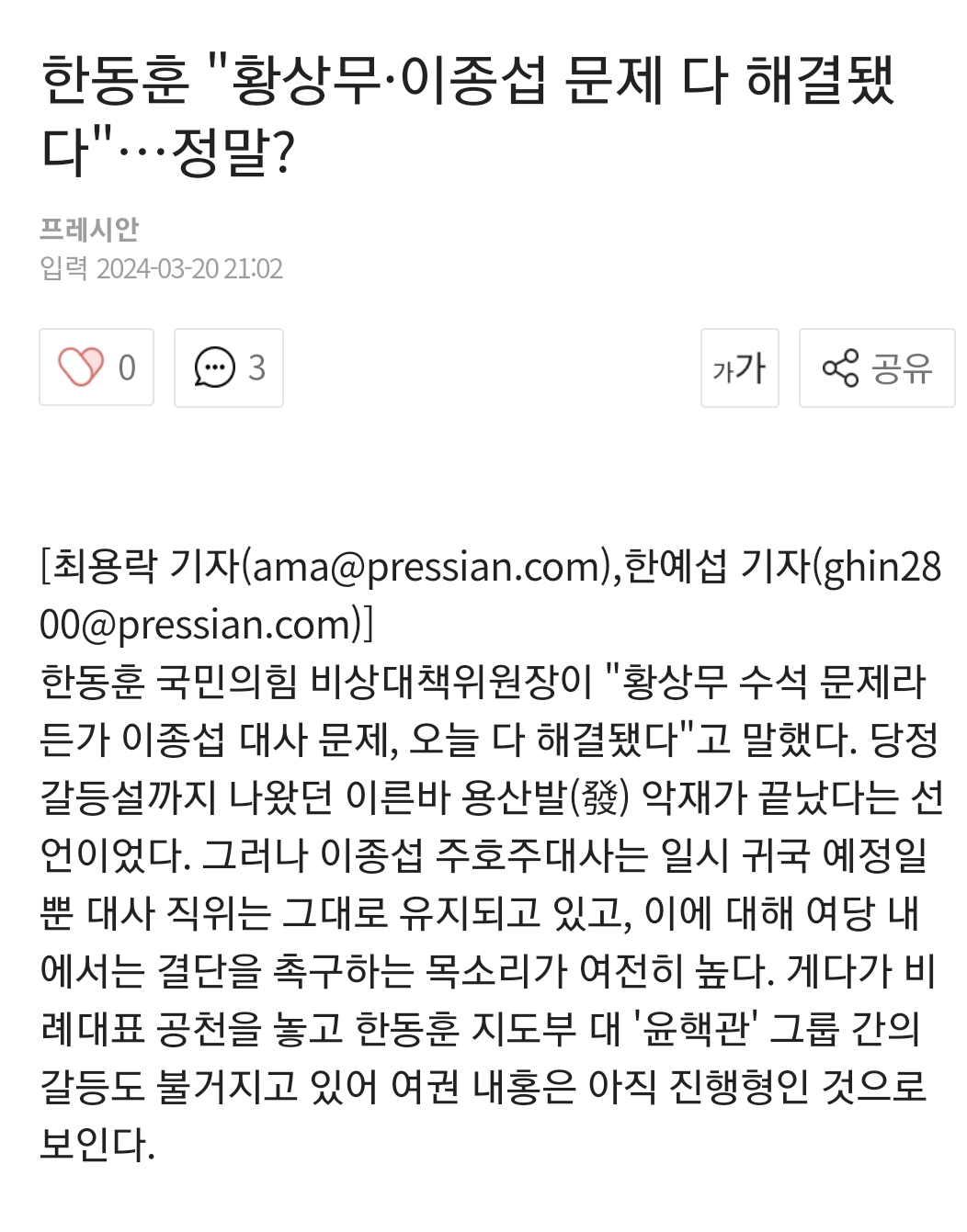 한동훈 "황상무·이종섭 문제 다 해결됐다"…정말? News2024. 3. 21. 02:38