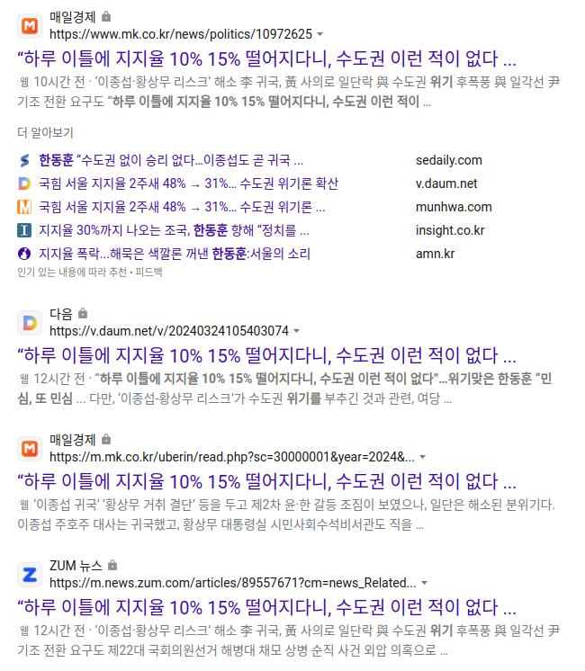 “하루 이틀에 지지율 10% 15% 떨어지다니, 수도권 이런 적이 없다”…위기맞은 한동훈 “민심, 또 민심” News2024. 3. 24. 21:26