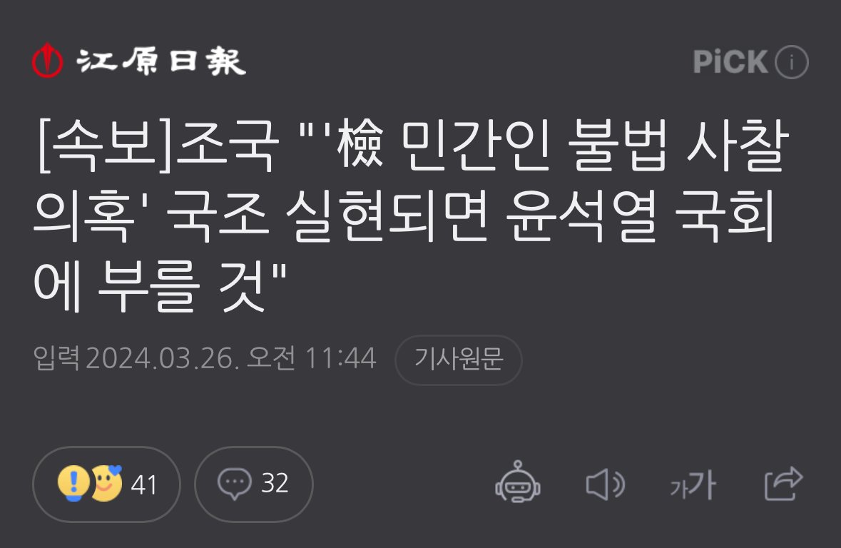 [속보]조국 "'檢 민간인 불법 사찰 의혹' 국조 실현되면 윤석열 국회에 부를 것" News2024. 3. 26. 12:21