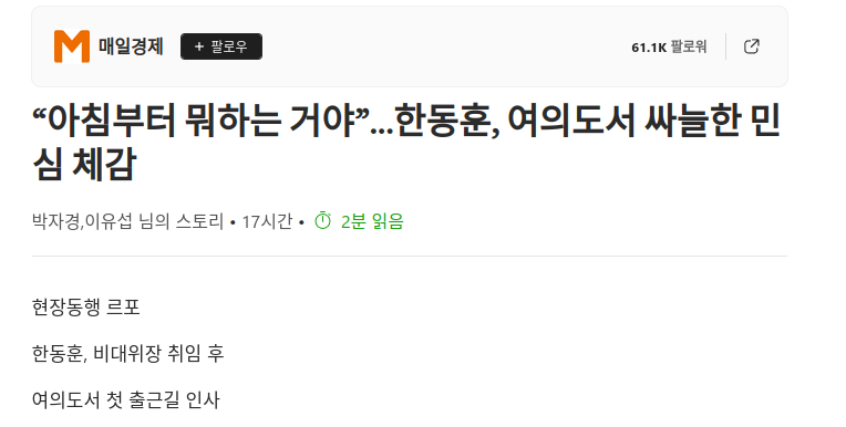 “아침부터 뭐하는 거야”...한동훈, 여의도서 싸늘한 민심 체감