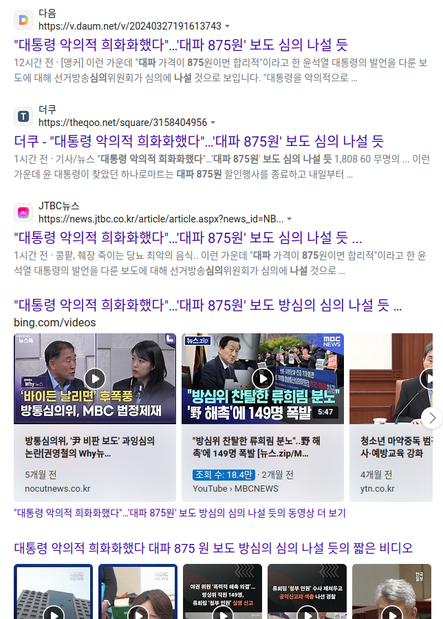 "대통령 악의적 희화화했다"…'대파 875원' 보도 심의 나설 듯 News2024. 3. 27. 21:08