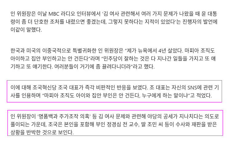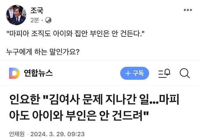 전투력 만랩 조국, 자폭 개그, 인요한 "김여사 문제 지나간 일…마피아도 아이와 부인은 안 건드려“ News2024. 3. 29. 16:37