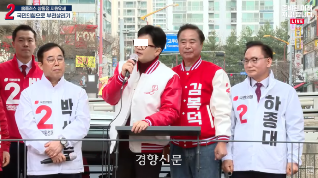 국민의힘은 30일 한동훈 비상대책위원장의 유세 중 “여러분 아까 제가 말한 막말하는 사람들 쓰레기 같은, 이재명, 김준혁, 양문석 등등이 말한 쓰레기 같은 말들을 정말 불편하지만 한번 들어