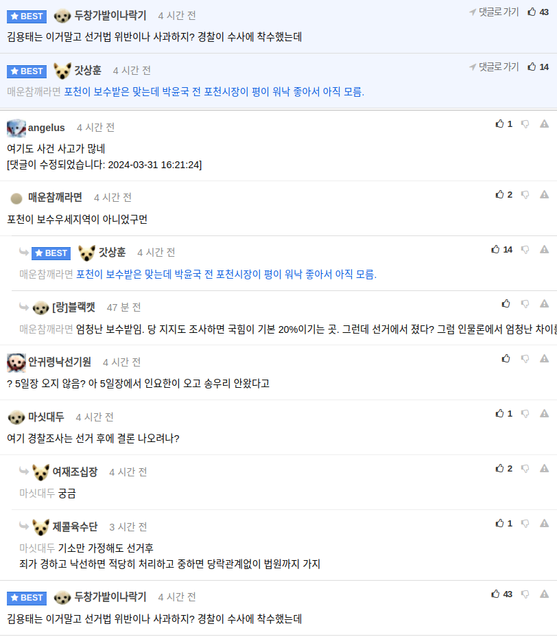 | [속보] 국힘후보 "윤 대통령, 국민에 무릎 꿇고 사과해야…대한민국 망한다" (0) | 2024.03.31 |