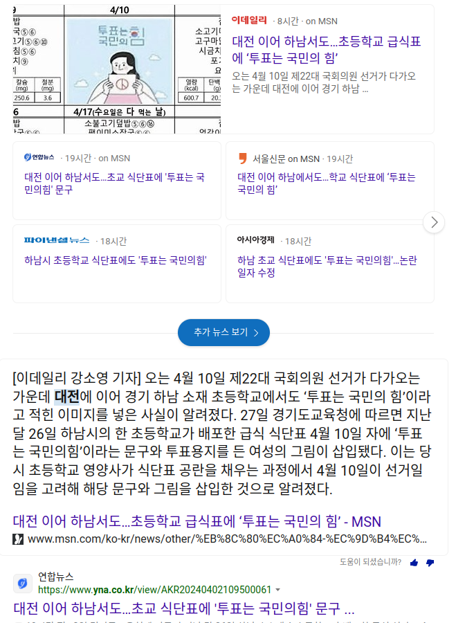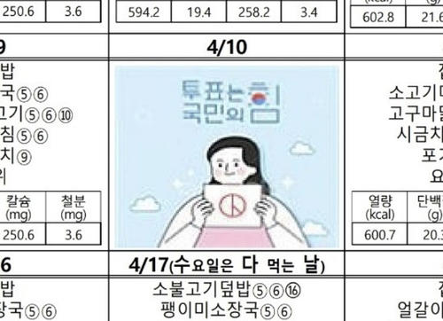 대전 이어 하남서도…초교 식단표에 '투표는 국민의힘' 문구 News2024. 4. 3. 11:01