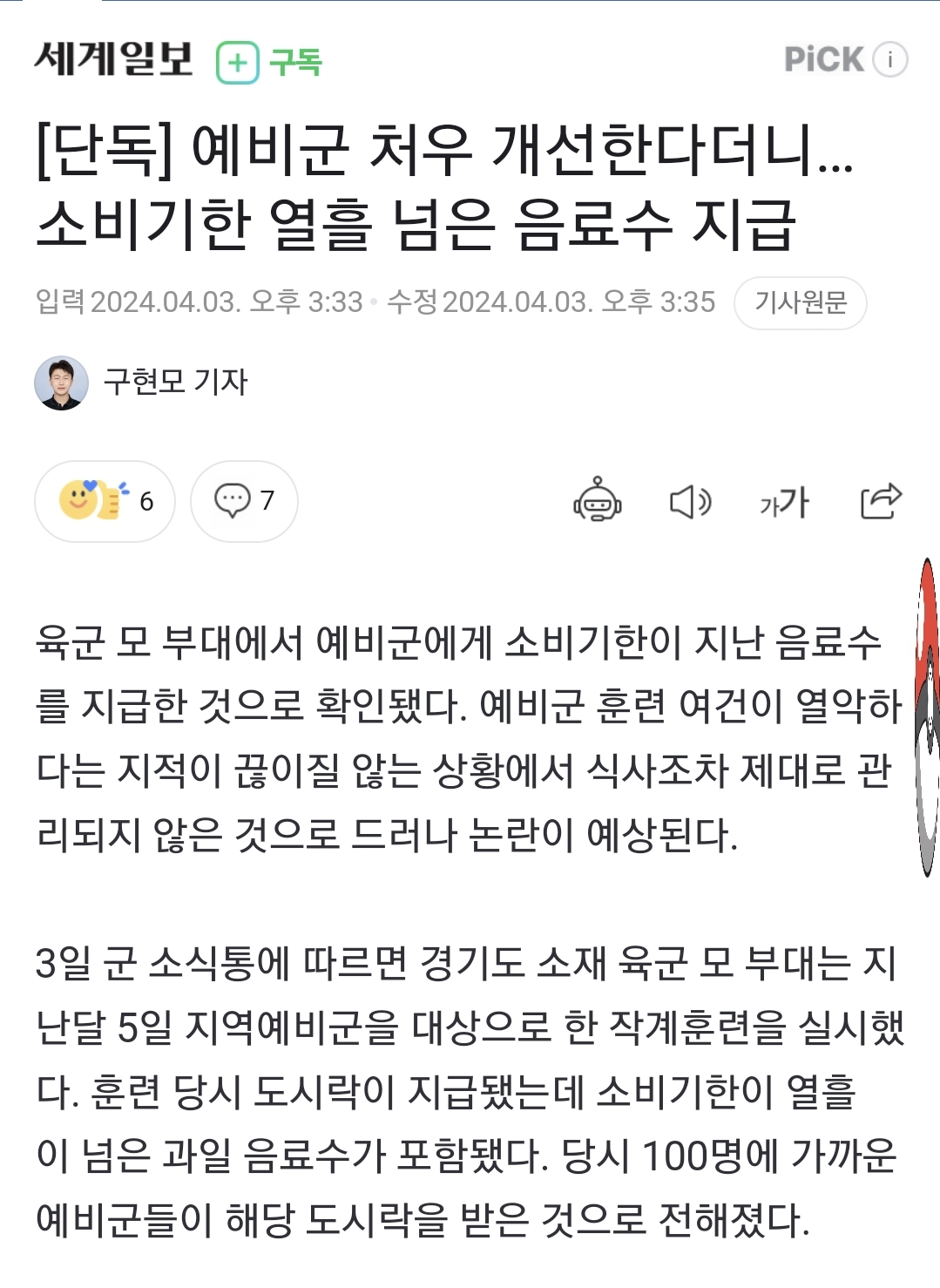 단독] 예비군 처우 개선한다더니… 소비기한 열흘 넘은 음료수 지급 News2024. 4. 3. 15:49