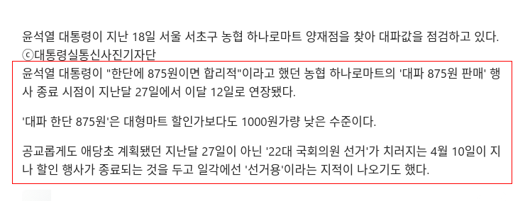 하나로마트에서 여전히 대파 한단을 875원에 팔고 있는데 '파격 세일 종료 시점' 보니 참 공교롭네~ 싶어 고개 갸웃거린다 News2024. 4. 4. 09:45
