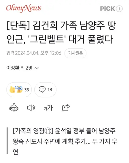 해먹을 결심, [단독] 김건희 가족 남양주 땅 인근, '그린벨트' 대거 풀렸다 News2024. 4. 5. 06:55