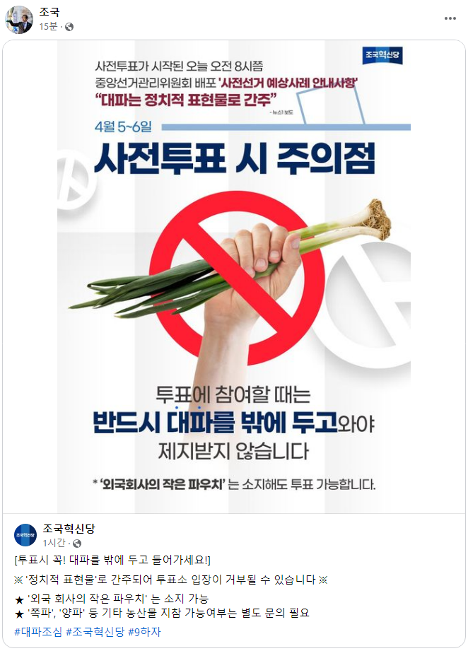 대파금지에 조국혁신당의 발빠른 대응 News2024. 4. 5. 15:41