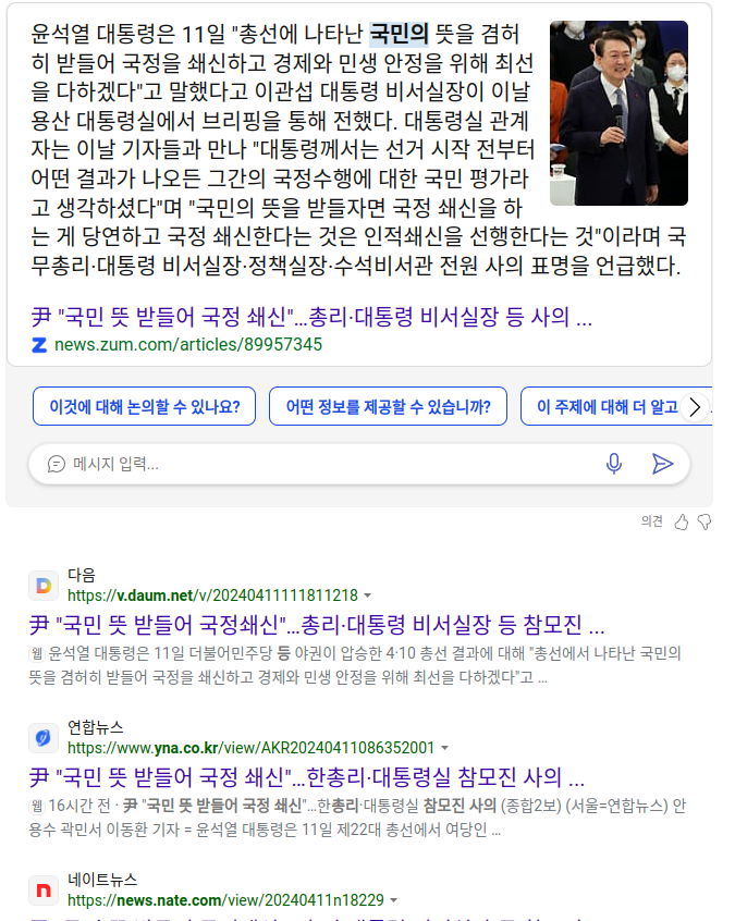 尹 "국민 뜻 받들어 국정쇄신"…총리·대통령 비서실장 등 참모진 사의표명 News2024. 4. 12. 04:55