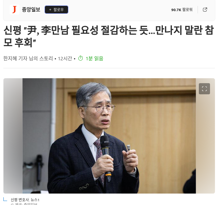 신평 "尹, 李만남 필요성 절감하는 듯…만나지 말란 참모 후회", 커뮤니티