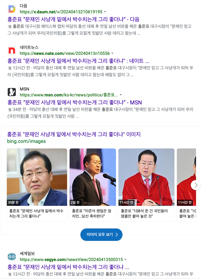 | "홍준표의 'ㅎ' 자도 꺼내지 말라...총리 하려고 대구로 내려오지 않았다" (0) | 2024.04.13 |