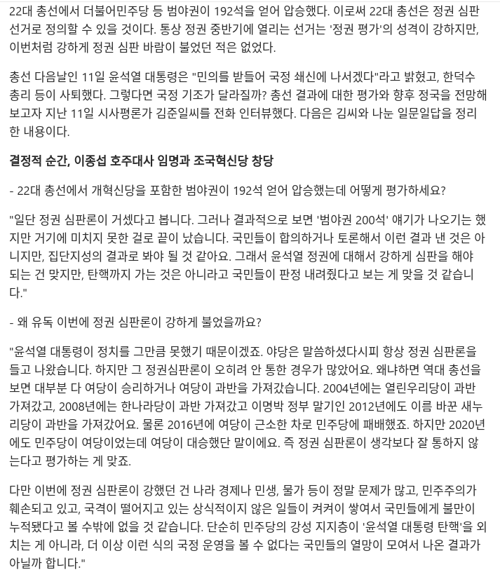 "윤 대통령, 달라지지 않을 것... 한동훈은 곧 돌아온다" News2024. 4. 14. 21:58