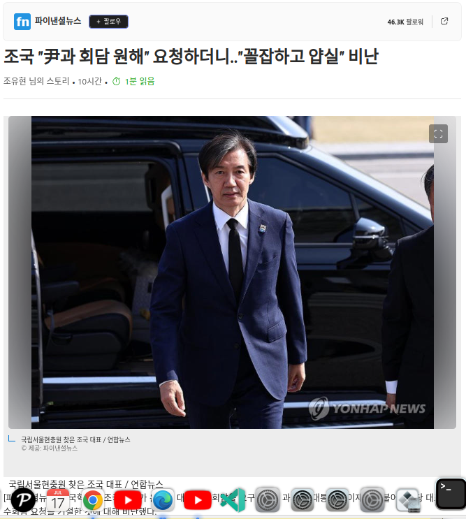 조국 "尹과 회담 원해" 요청하더니.."꼴잡하고 얍실" 비난