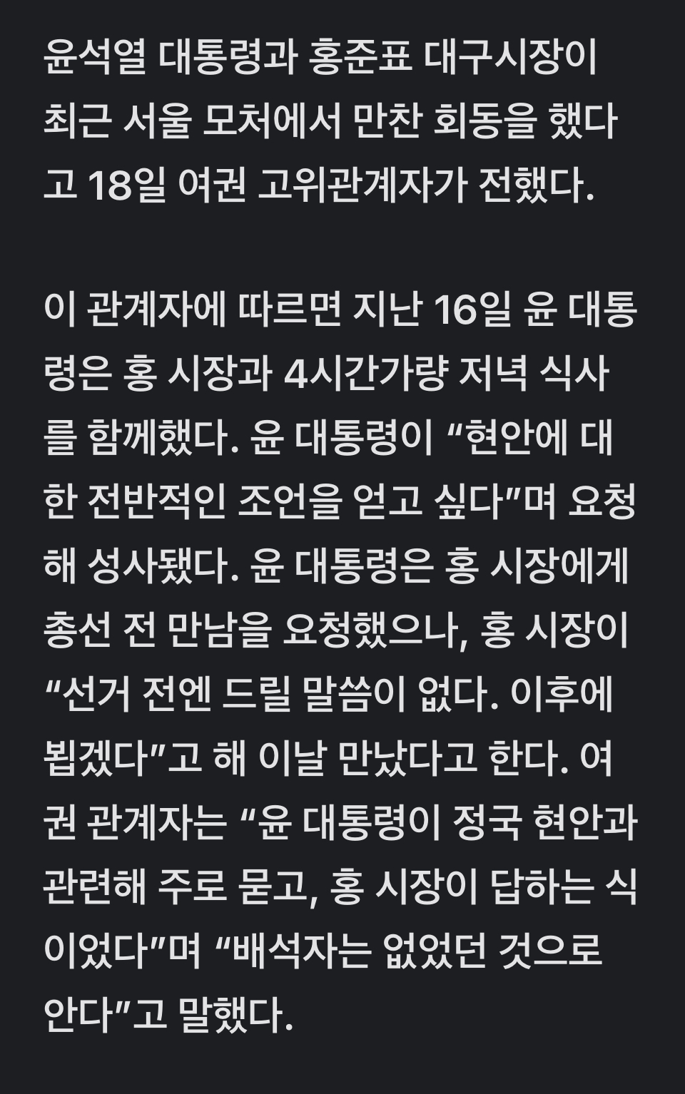 홍준표에 조언 구한 윤통 News2024. 4. 18. 11:58