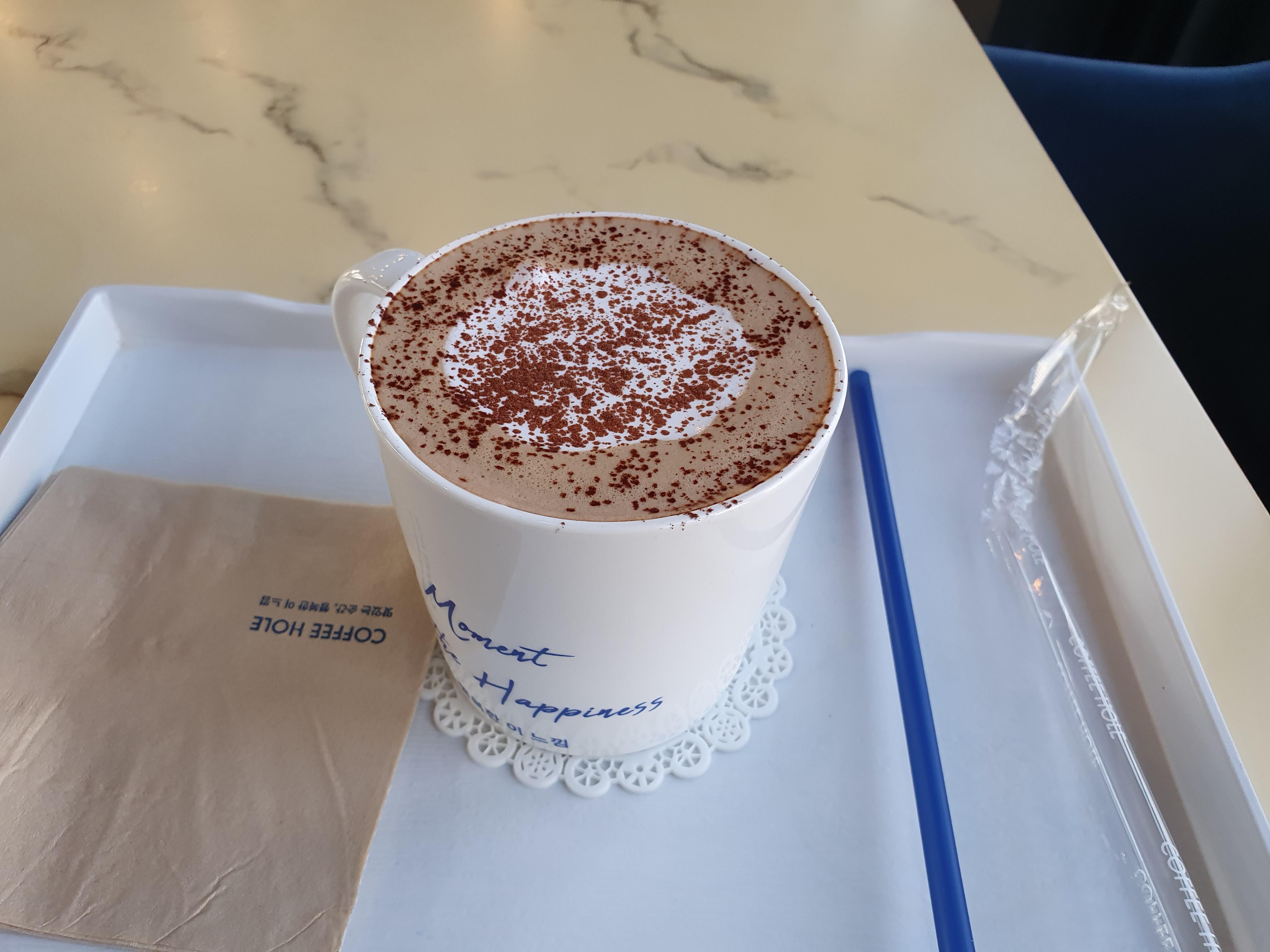 커피홀에서는 다양한 종류의 커피와 디저트를 즐길 수 있는데요, 저는 개인적으로 카페모카를 좋아합니다. 커피홀의 카페모카는 진한 에스프레소와 부드러운 우유, 달콤한 초콜릿 시럽이 조화롭게 어우러져서 입맛에 딱 맞습니다. 커피와 함께 즐길 수 있는 디저트도 맛있습니다. 특히 크로와상과 스콘은 신선하고 바삭해서 커피와 잘 어울립니다.