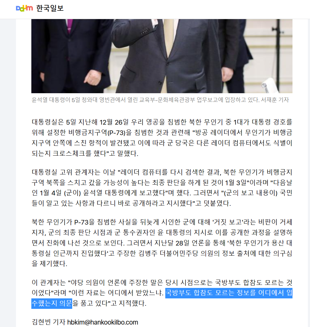| 국방부도 합참도 모르는 정보 어디에서 입수했는지 의문 (0) | 2023.01.05 |