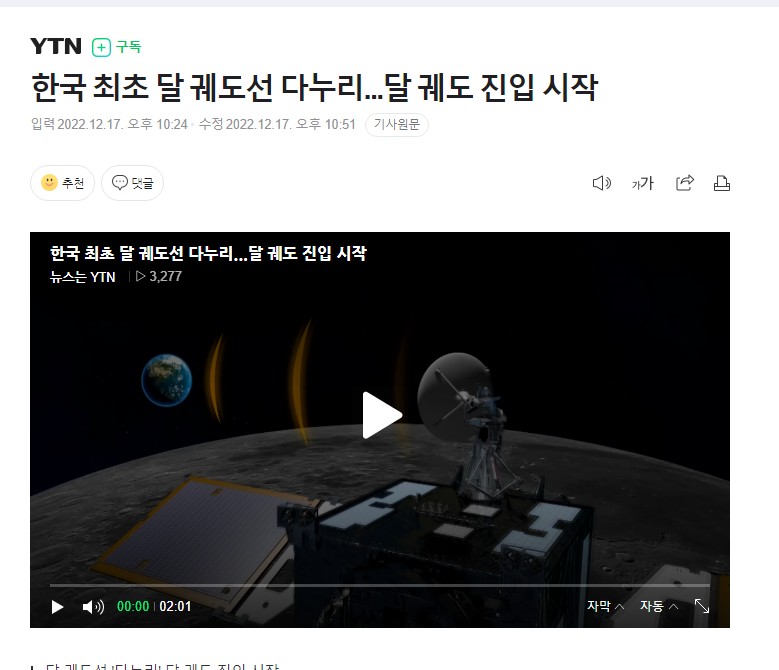 | 한국, 세계 7번째 달 탐사국 But, 망 (0) | 2022.12.19 |