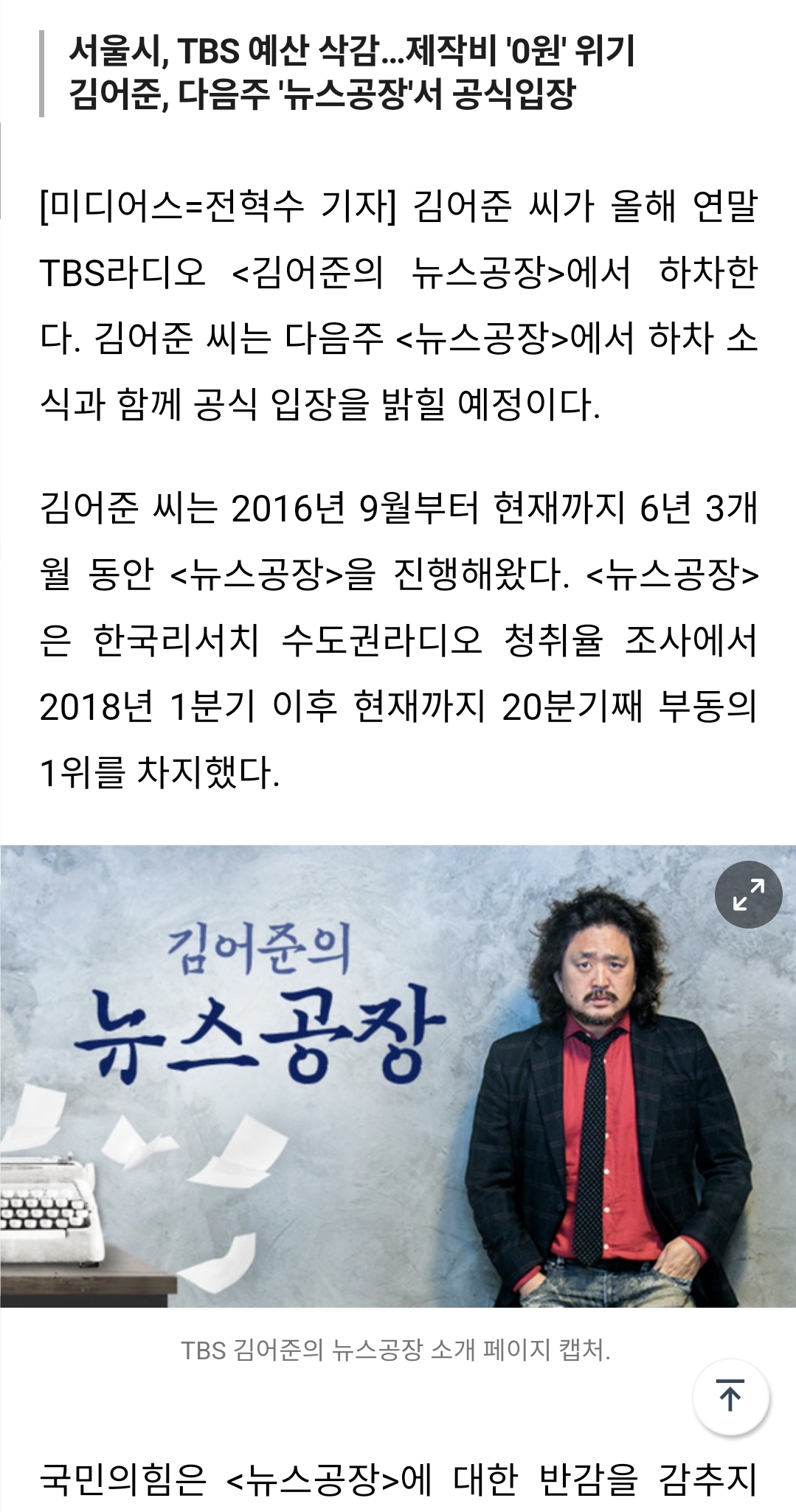 | 김어준, 결국 TBS '뉴스공장' 연말 하차 (0) | 2022.12.02 |