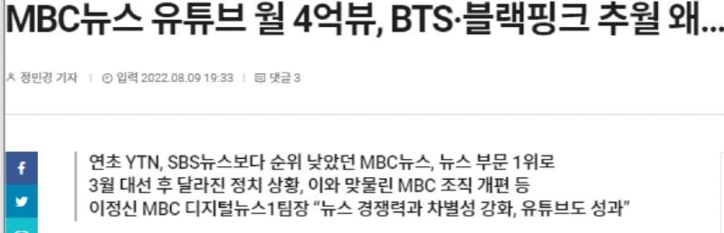 | BTS, 블랙핑크 제친 유튜브 채널, MBC (0) | 2022.11.21 |