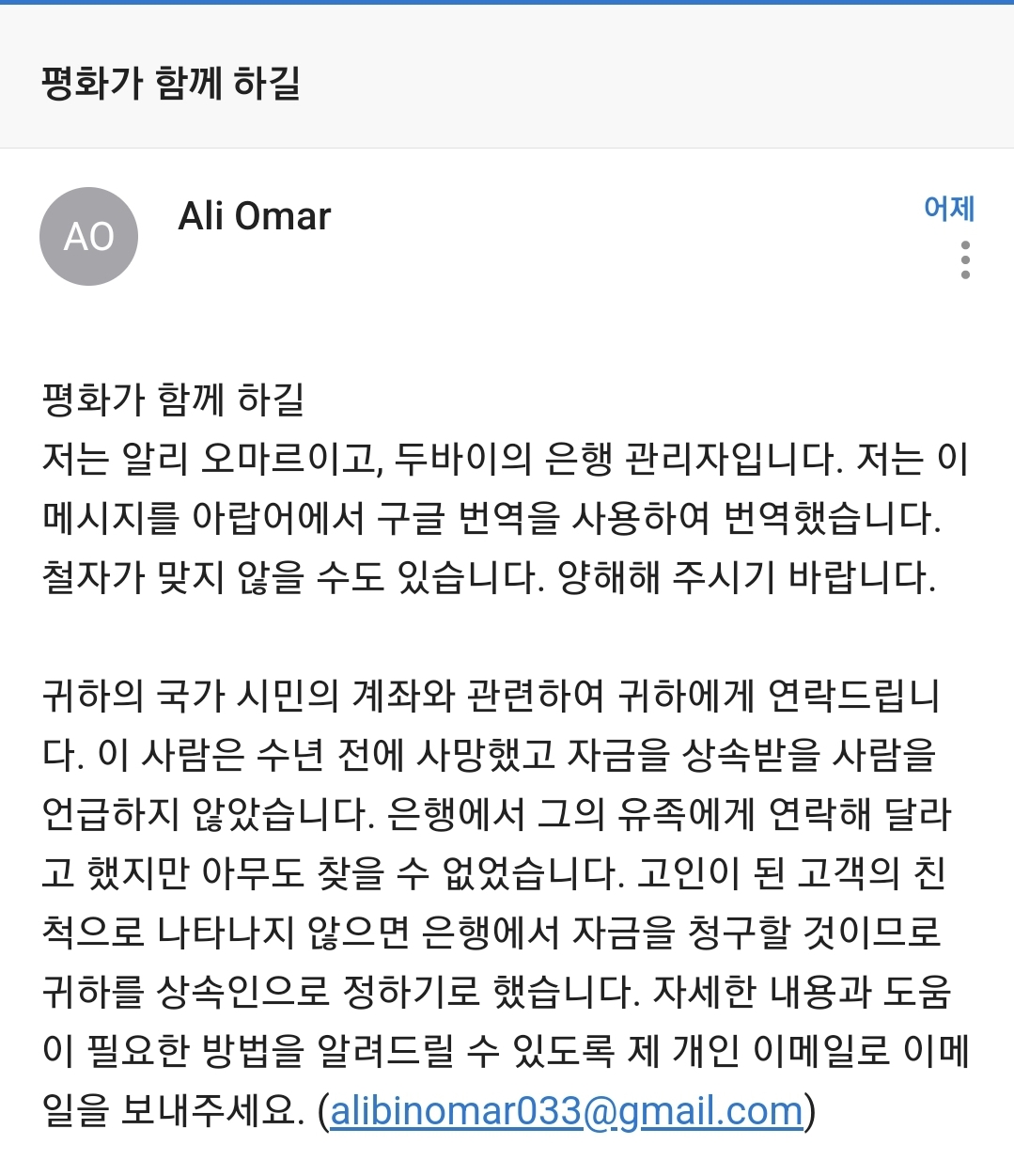| 국제적인 스캠(사기)메일이 오다. (0) | 2025.03.29 |
