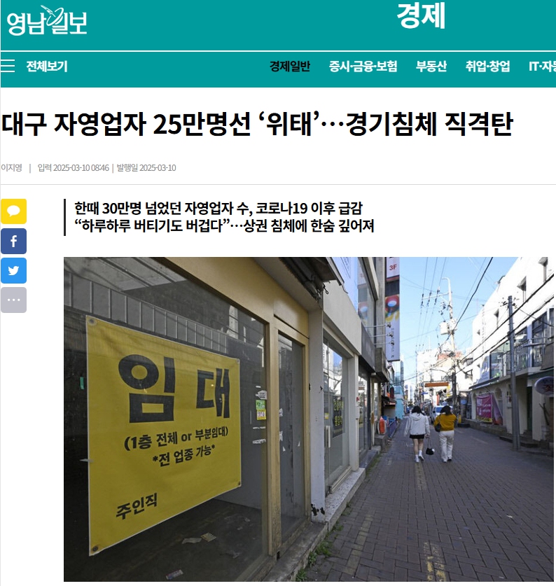대구 자영업 폐업률 1위 달성 News2025. 3. 17. 20:44