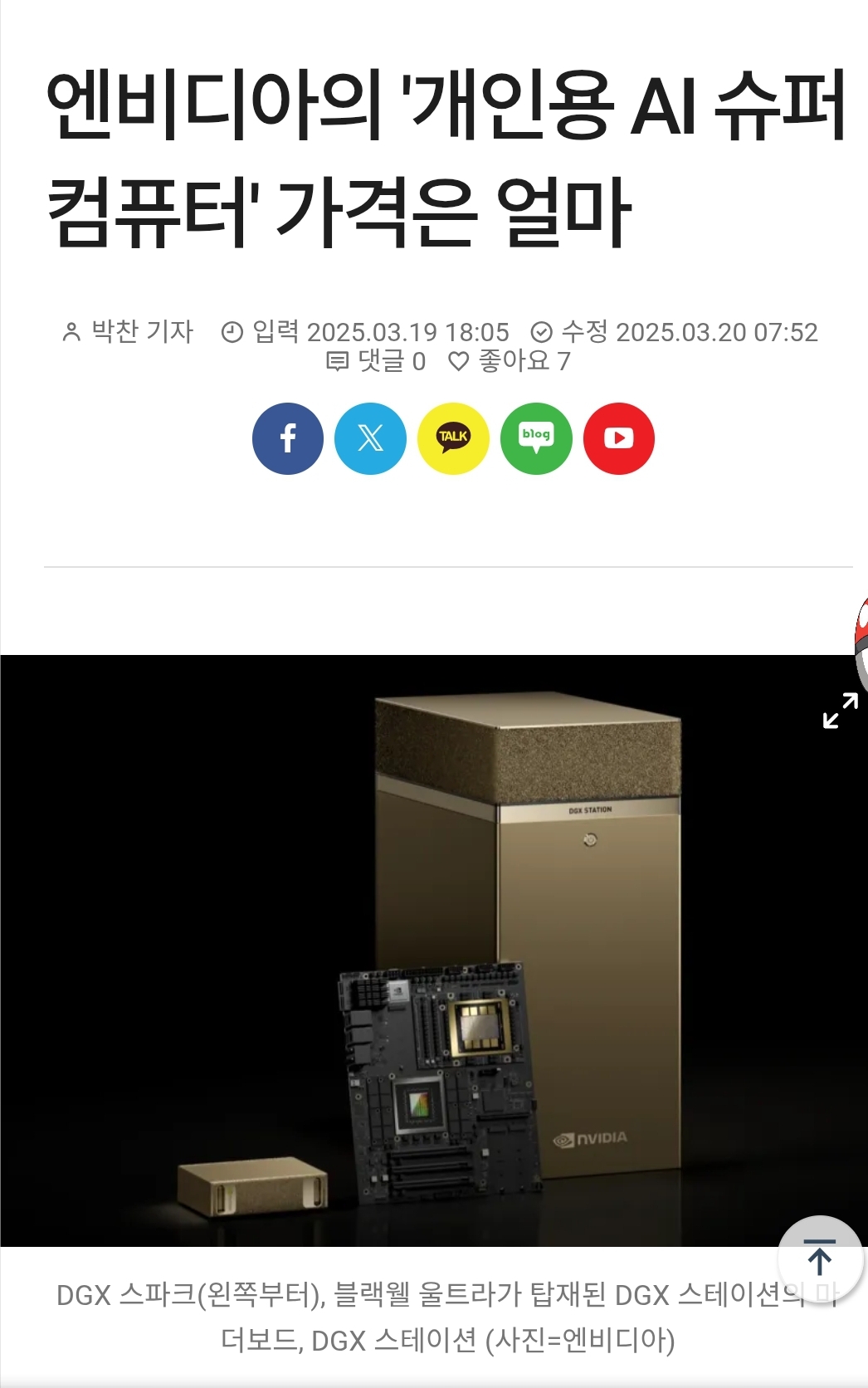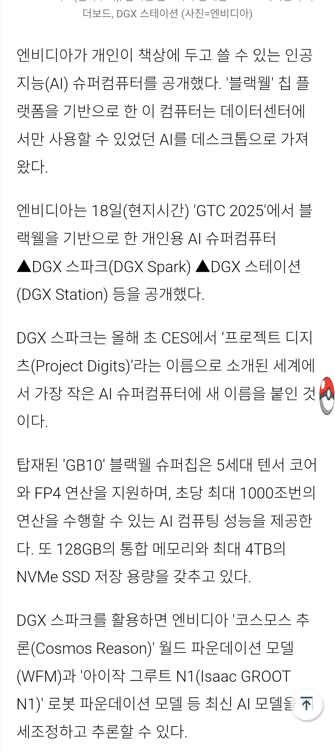 엔비디아의 '개인용 AI 슈퍼컴퓨터' 가격은 얼마 AI2025. 3. 24. 14:12