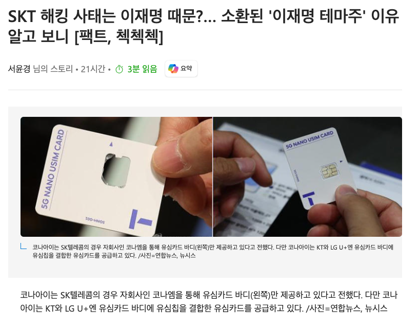 | SKT 해킹 사태는 이재명 때문?… 소환된 '이재명 테마주' 이유 알고 보니 [팩트, 첵첵첵] (0) | 2025.04.30 |