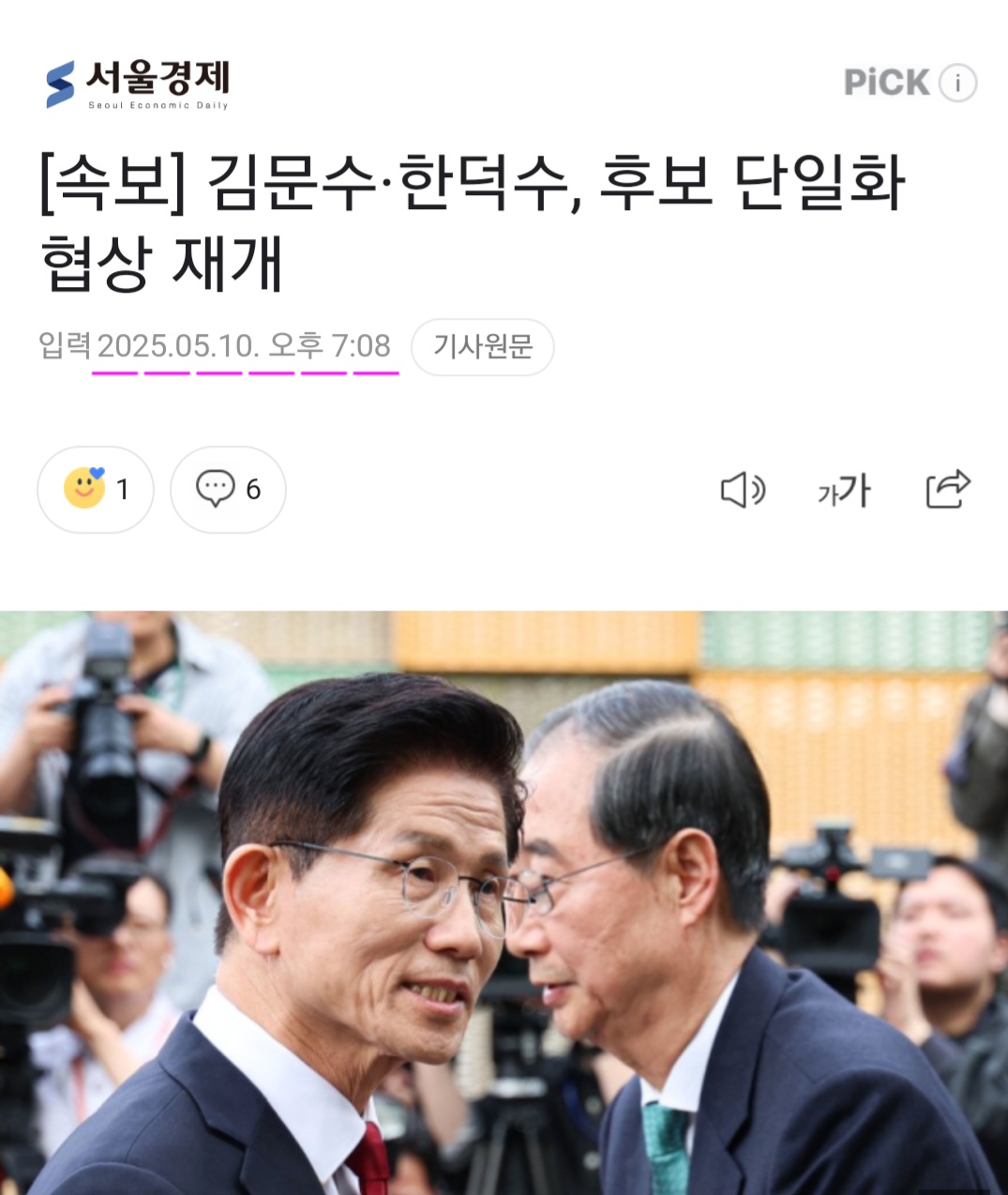 | 김문수 한덕수, 후보단일화 협상중, but, (0) | 2025.05.10 |