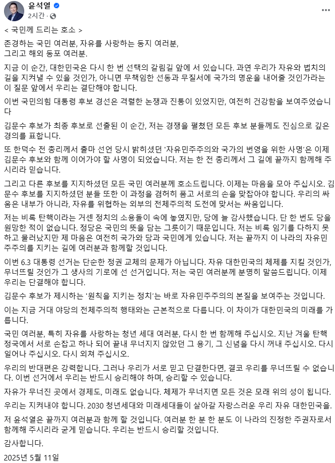 | 내란 수괴, 국민께 드리는 호소 (0) | 2025.05.11 |