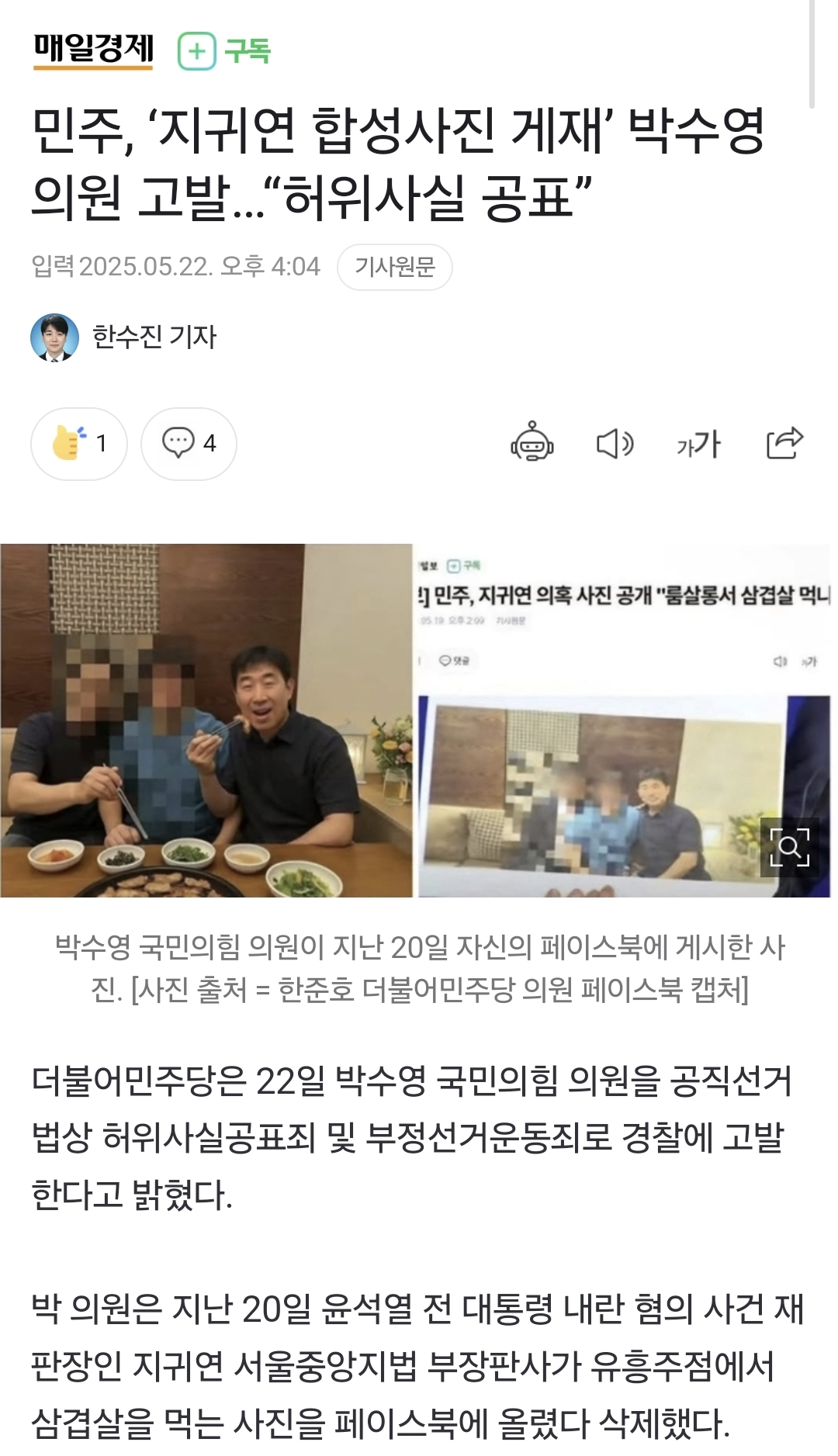 민주, 지귀연 합성사진 게재 박수영 의원 고발…“허위사실 공표” News2025. 5. 22. 17:15