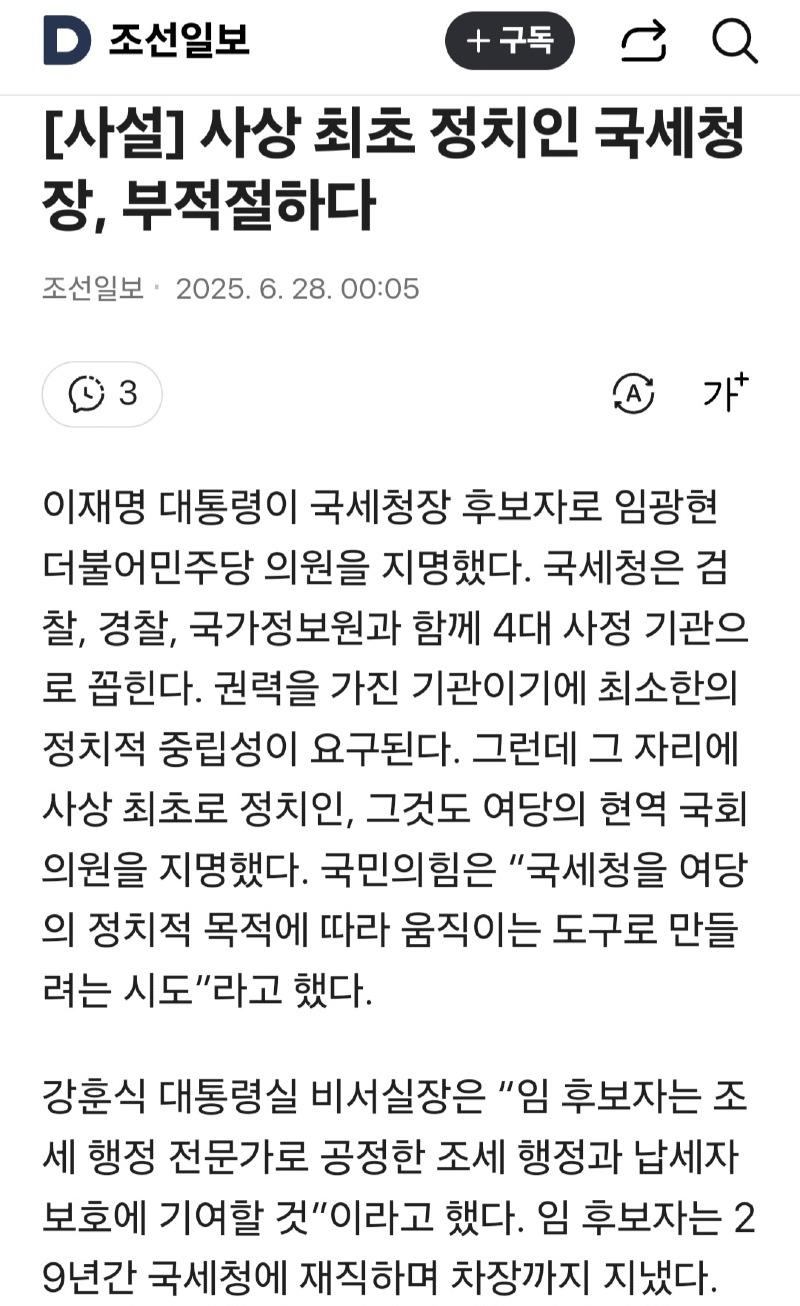 | 국세청장 인사검증 기사 (0) | 2025.06.28 |