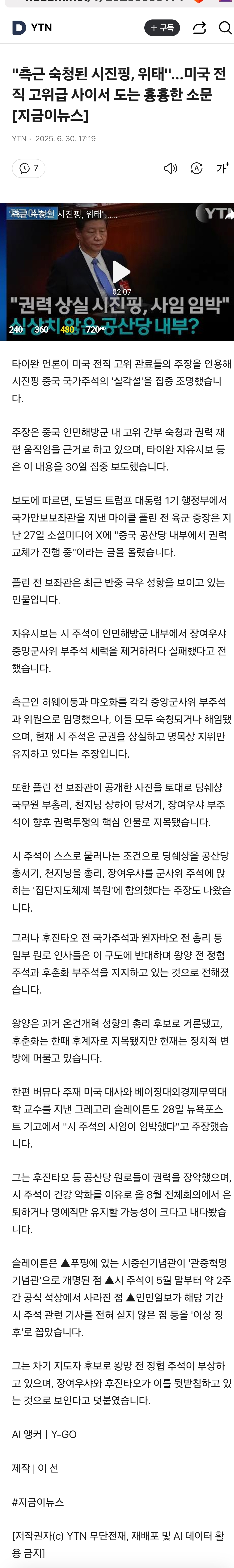 "측근 숙청된 시진핑, 위태"...미국 전직 고위급 사이서 도는 흉흉한 소문 [지금이뉴스] News2025. 6. 30. 20:01