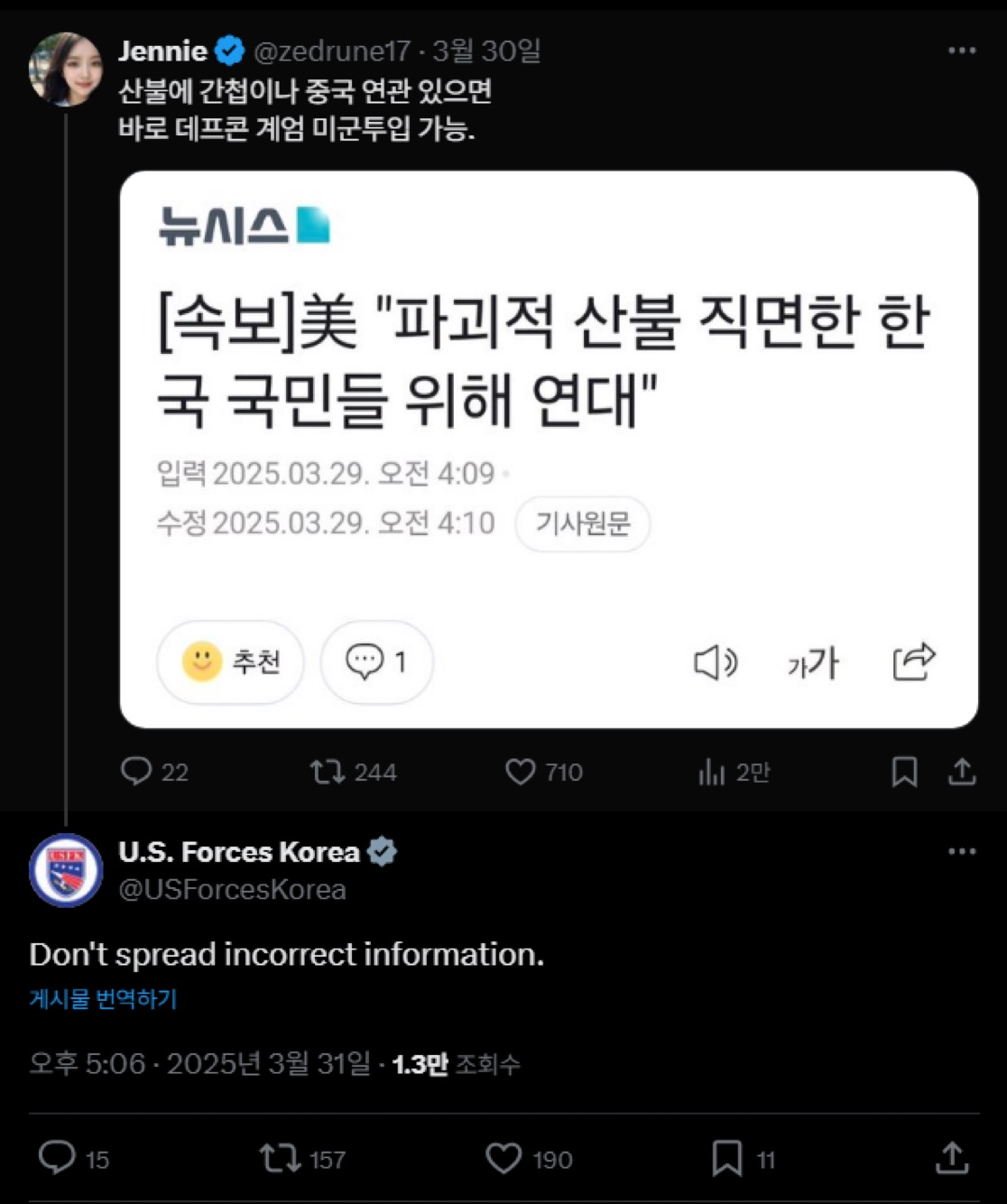| 미군과 계엄 관련 가짜 뉴스 생산자의 최후 (0) | 2025.06.21 |