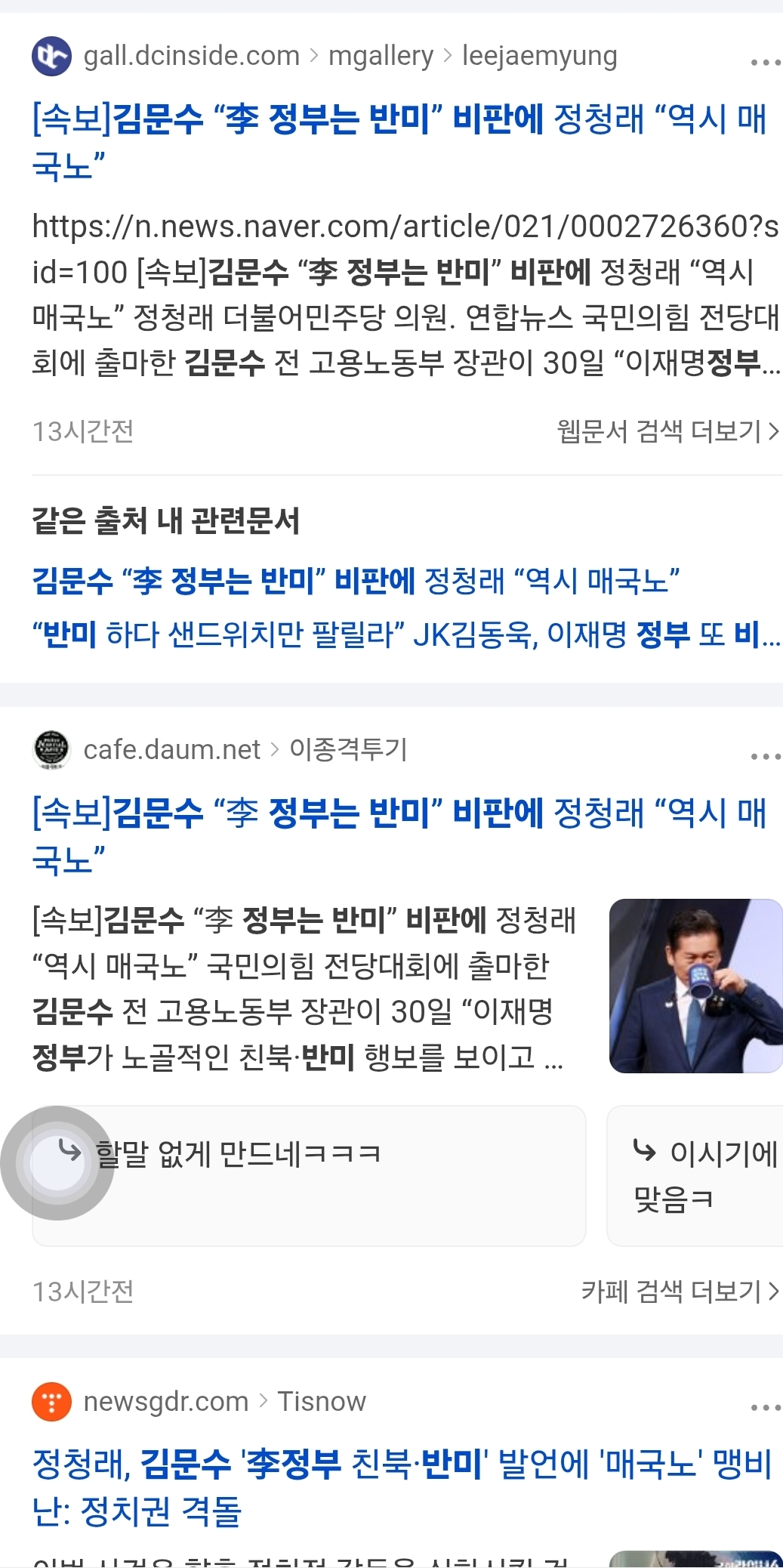 | 김문수의 아무말 대잔치, [속보] 김문수 "李 정부는 반미" 비판에…정청래 "역시 매국노" (2) | 2025.07.31 |