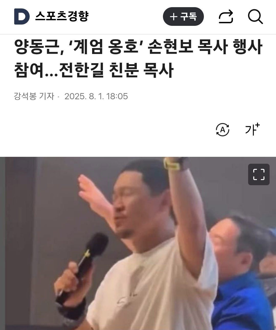 양동근, ‘계엄 옹호’ 손현보 목사 행사 참여…전한길 친분 목사 News2025. 8. 1. 21:16