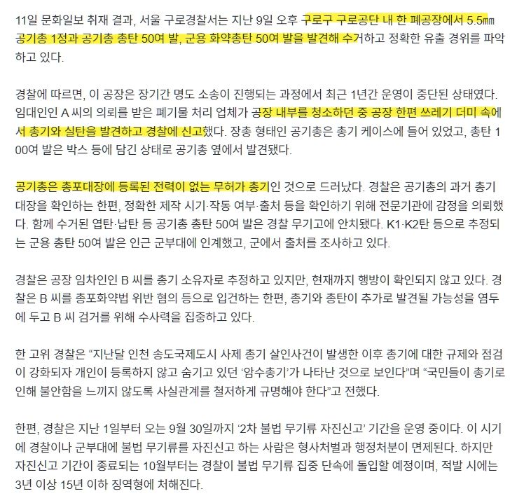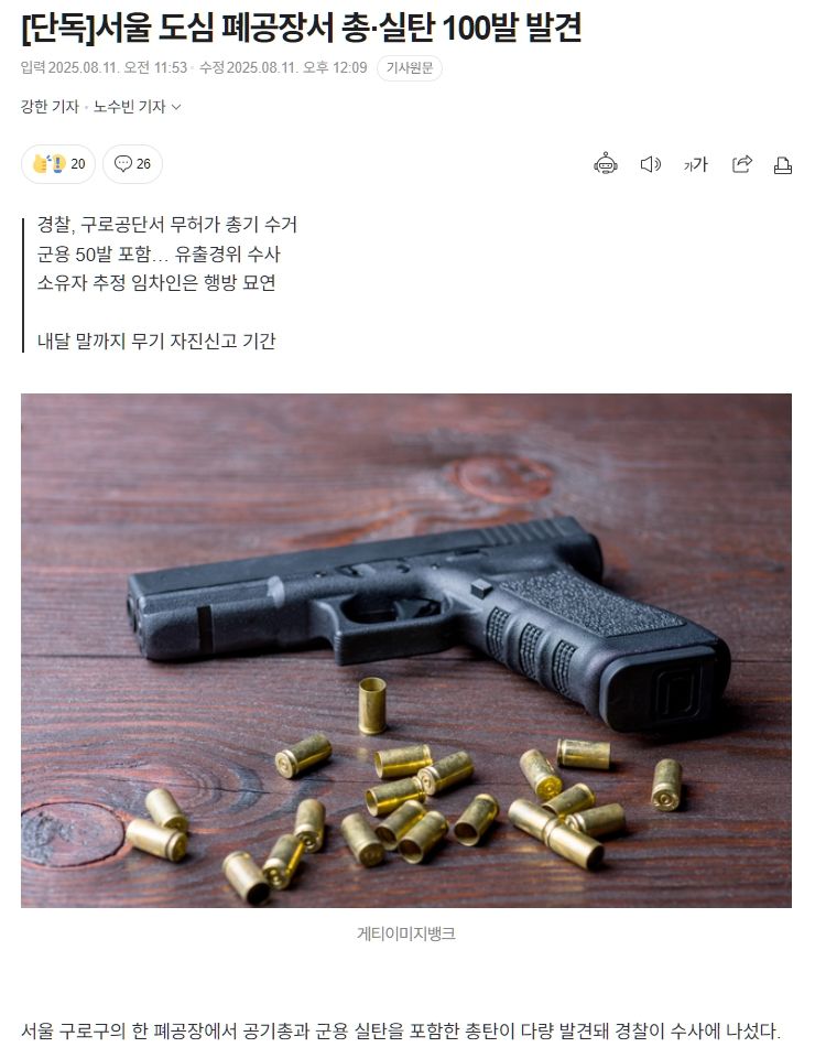 서울 도심 폐공장서 총·실탄 100발 발견 News2025. 8. 11. 21:33