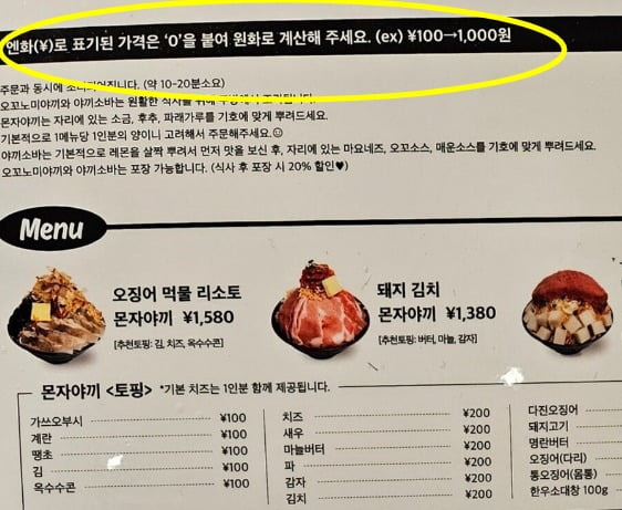 "1000엔 메뉴, 1만원 내세요"…대구 식당 '엔화 메뉴판' 논란