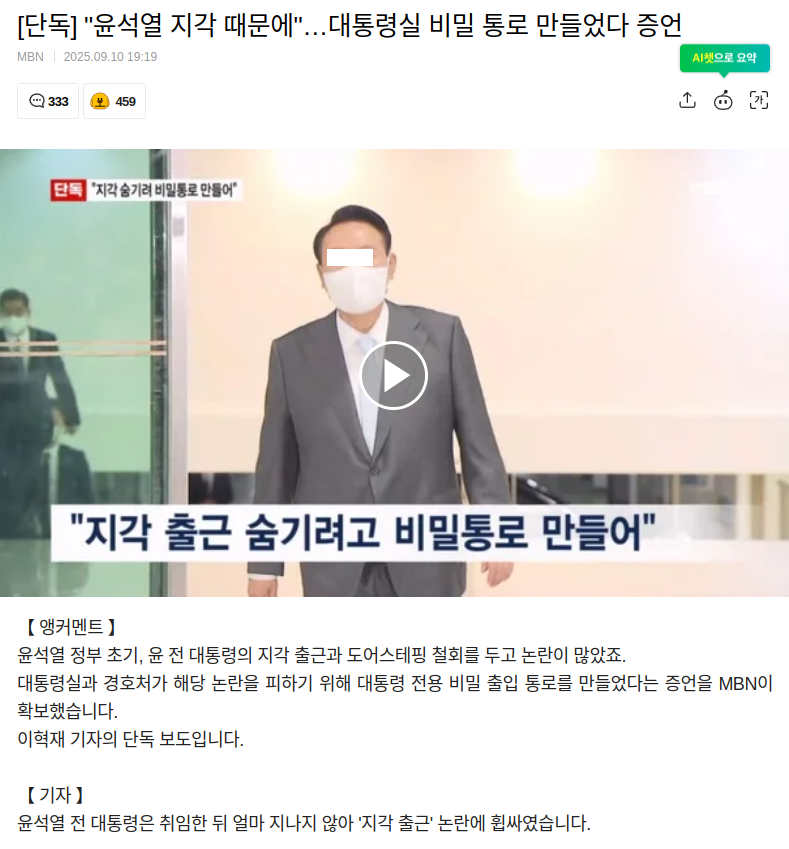 윤석열, 지각 때문에 대통령실 개구멍✔️ 비밀통로 만들어 4억 태운 News2025. 9. 10. 23:04
